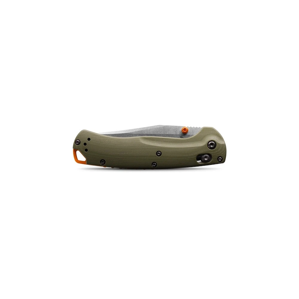 Make the leap from hunt carry to everyday carry.. By popular request, Benchmade’s 15536 Taggedout®️ subtly reconfigures this hunt optimised folder into a multi-role outdoor EDC. Replacing the thumb hole with an orange anodised thumbstud and bearing an orange anodised lanyard backspacer, this new Taggedout®️ also trades in the featherweight Grivory®️ handle for OD Green G10. With a CPM-S45VN blade providing increased edge retention and corrosion resistance, the new Taggedout®️ is ready to take on everything your adventure has in store. Made in U.S.A.