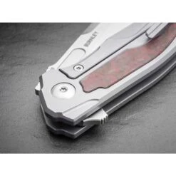 The modern Boker Plus Aphex Mini is the significantly scaled-down version of the Boker Plus Collection 2020 designed by Lucas Burnley. The intricately ground blade is made of VG-10 and is supplied with an impressive hairline finish and a decorative ricasso. Thanks to the ball bearing and flipper, the knife is particularly easy to open. The ergonomically shaped handle is milled three-dimensionally from titanium and is adorned with a modern inlay of wild carbon fibre with red inclusions. Jimpings around the thumb rest and the generously dimensioned spacer increase safety at work. Supplied with a lanyard hole, removable titanium clip (tip-up/r) and a high-quality nylon case for storage.