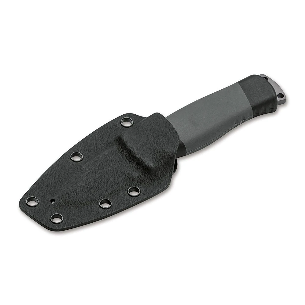 The compact Boker Plus Outdoorsman Mini has the same handle dimensions as the original model, albeit with a significantly shorter blade. The knife was designed for full functionality and is perfect for careful disjointing and other delicate cutting tasks. The full tang and wide blade offer maximum stability. The extended handle butt is shaped as a handy hammer plate and has drill holes that can be used to attach a lanyard. Comes with a fitted Kydex sheath.
