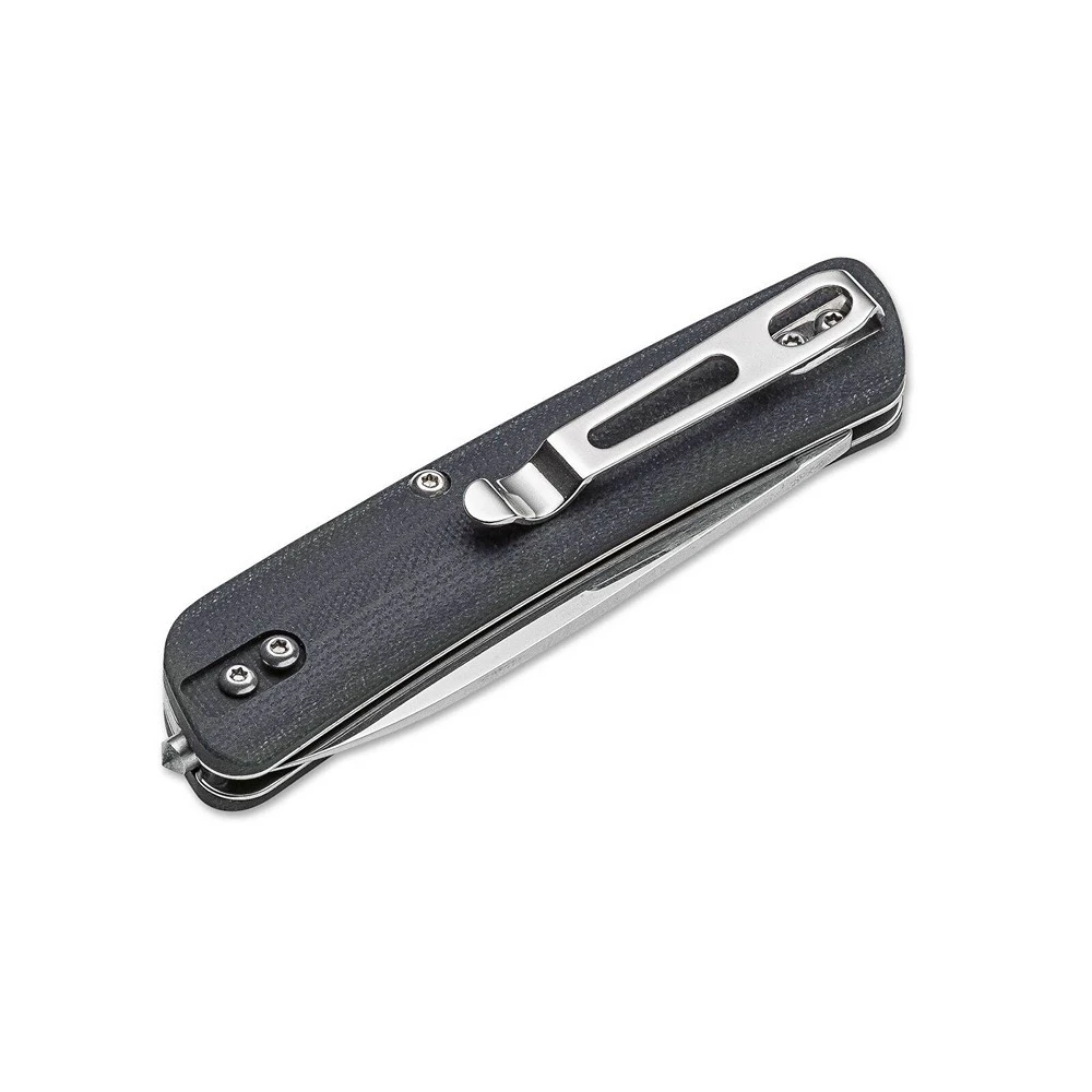 With the Boker Camp Knife, one of the forefathers of all modern multi-purpose pocket knives, our history began in the year 1869. After almost 150 years of successful market presence, the time came to convert this proven concept into a modern knife. The modernized construction, which is based on solid steel liners, is embedded in two contoured handle scales, made out of black . The Swedish Sandvik steel, with a Rockwell hardness of 58-60 HRC, provides outstanding edge retention of the hollow ground blade. The high quality manufacturing, with a smooth blade action and optimized operability, are proof of the premium quality of our Boker Plus Tech Tools. The hollow ground stainless steel blade is accompanied by these tools: Glass breaker, clip.