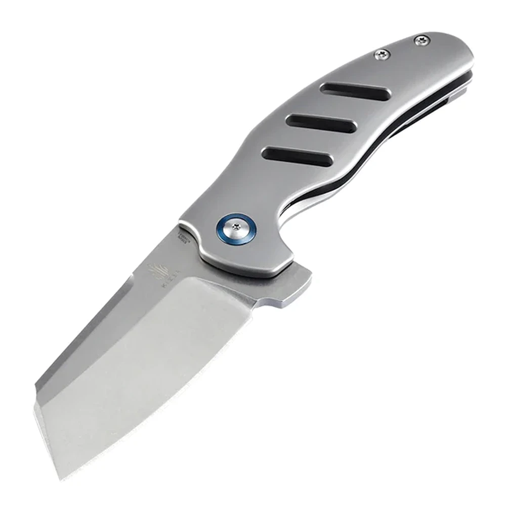 This Kizer Mini Sheepdog knife offers a more compact version of the cleaver design from Chris Conaway of Sheepdog Knives. Premium CPM-S35VN blade steel provides excellent wear resistance and edge retention. The blade deploys effortlessly on a smooth ball bearing pivot, and locks up solid. A titanium handle offers top notch durability and a lightweight frame. It is a great companion for any hiker, landscaper, backpacker, hunter, wilderness guide, electrician or anyone in need of a reliable everyday carry.
