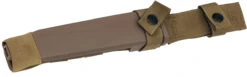 The 3S Bayonet is a solid built model in Ontario’s Military Tactical line of knives, and is used by the US Marine Corps. It has a black coated 1095 steel blade with a partially serrated cutting edge and sharpened clip point. The ribbed brown handle is sturdy in hand. The 3S Bayonet comes with a glass-filled nylon (GFN) scabbard with belt loop and MOLLE compatible attachment.